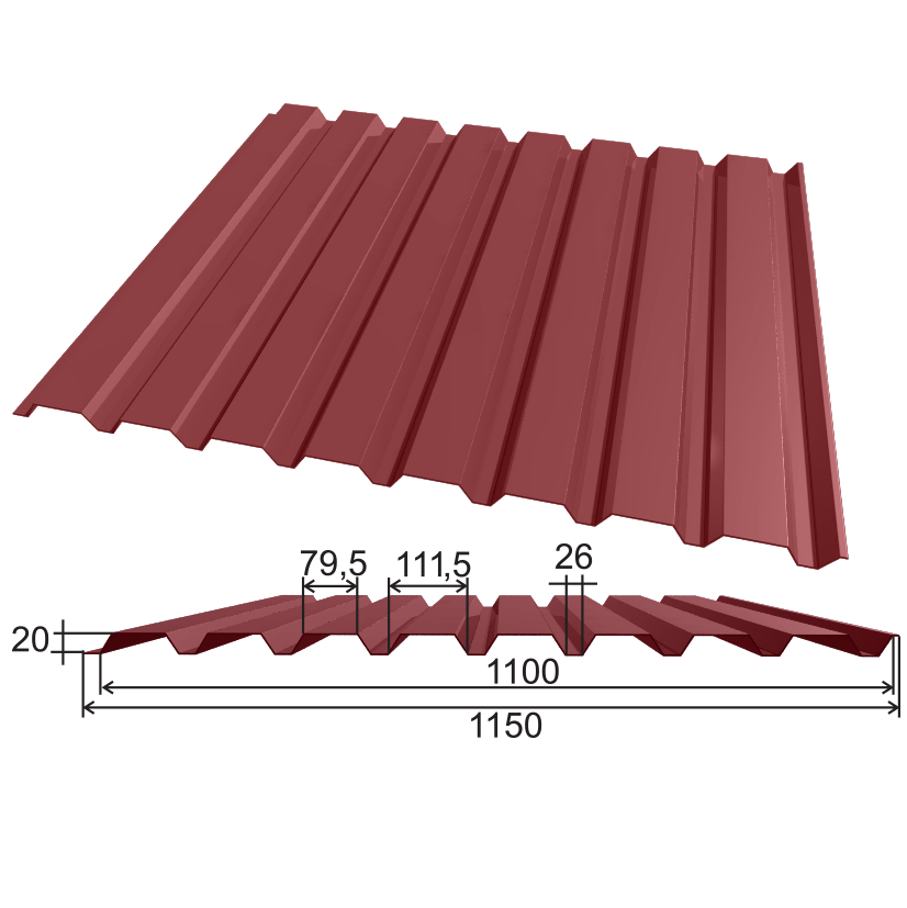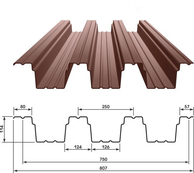 - Размеры листа. Доступная ширина профлиста — от 80 до 120 см, в зависимости от модели. Любую длину изготавливаем под заказ.