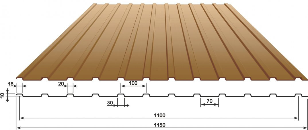Пример расшифровки. Профнастил С-20*1130: стеновой материал с высотой ребра 20 и полезной шириной листа 1130 мм.