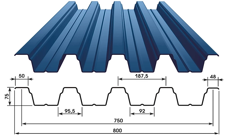 - Назначение. Н — несущий, для кровли; С — стеновой, для ограждений, перегородок, стен; НС — универсальный, как для кровли, так и для стен.